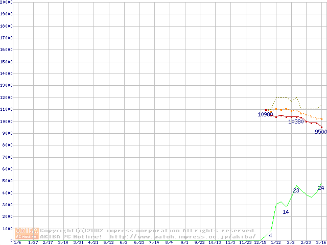 DiamondMax D540X (5400rpm,UltraATA/100,40GB/Platter,流体軸受)の最安値推移