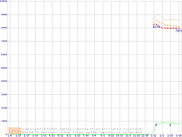 Socket 370 (PGA,FSB 100MHz,L2 64KB)の最安値推移