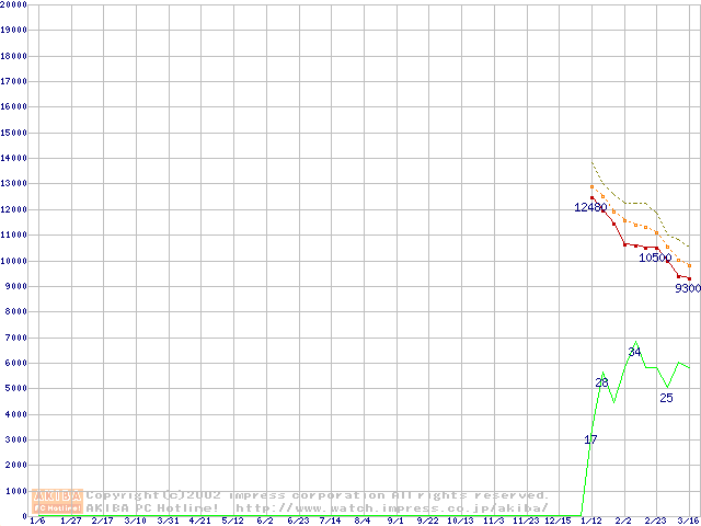 Celeron 1.10A GHz FC-PGA2 リテールパッケージの価格推移