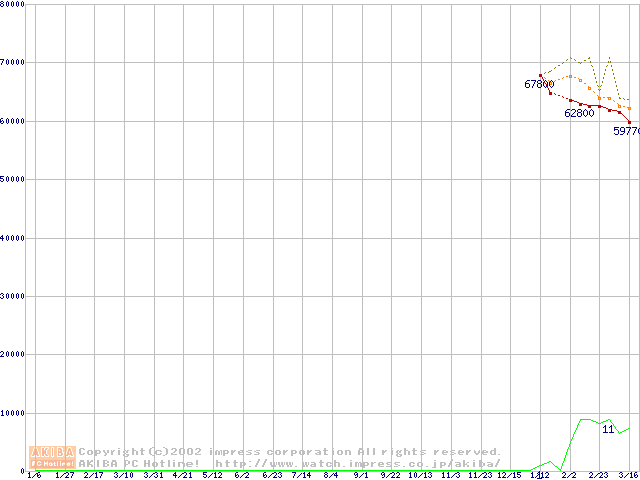 Socket 603 (micro-PGA,L2 512KB,Hyper-Threading,Prestonia)の最安値推移