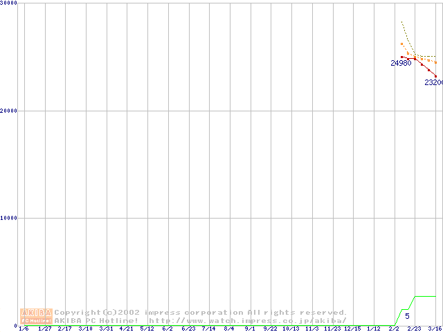 MHRシリーズ (9.5mm,4200rpm,UltraATA/100,2MB,20GB/プラッタ,流体軸受)の最安値推移