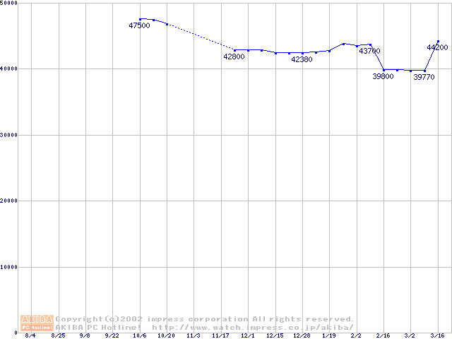| Travelstar 48GH (12.5mm,5400rpm,UltraATA/100,2MB,流体軸受)の最安値推移 |