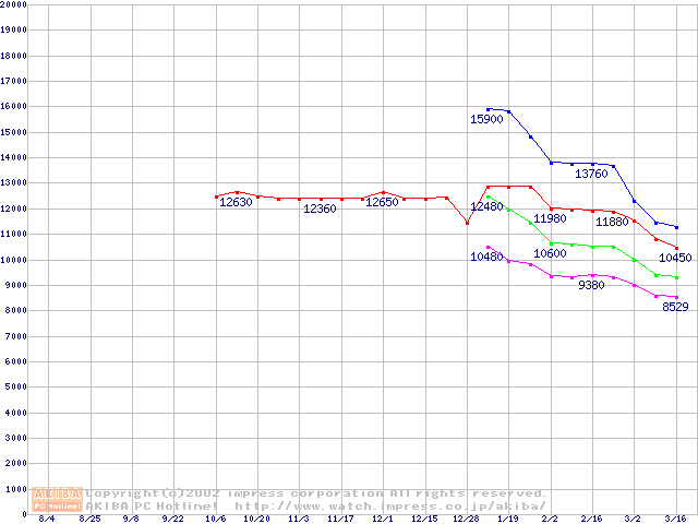 | [↓次グラフ]: | Socket 370 (FC-PGA,FSB 100MHz,L2 128KB)の最安値推移 |