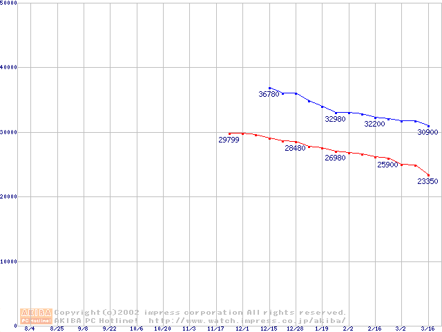 | [↑前グラフ]: | DiamondMax Plus 60 (7200rpm,UltraATA/100)の最安値推移 |