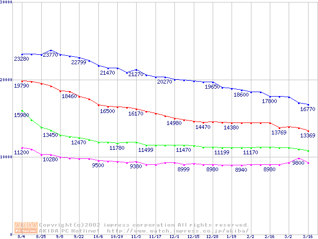 | [↑前グラフ]: | 541DX (5400rpm,UltraATA/100)の最安値推移 |