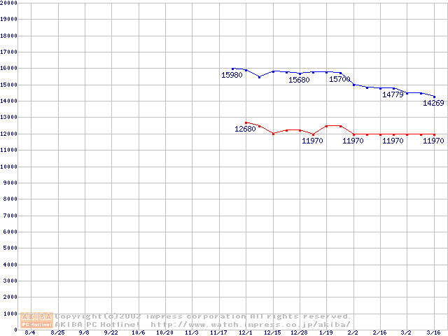 | [↑前グラフ]: | MPG3xxxAT (5400rpm,UltraATA/100)の最安値推移 |