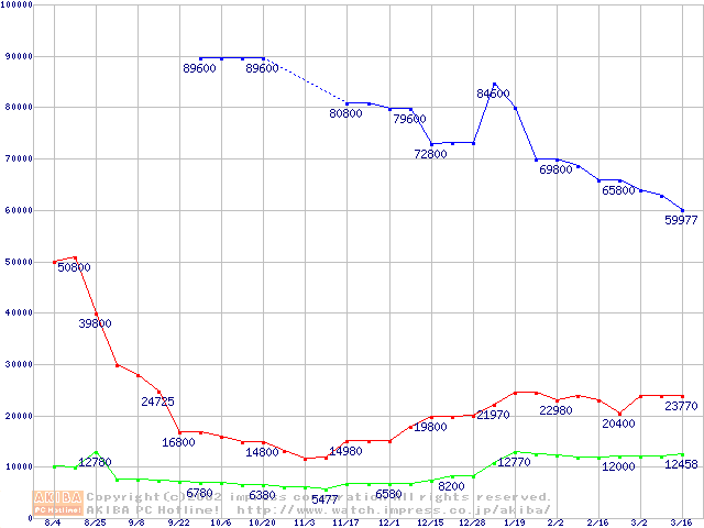 | [↑前グラフ]: | PC2700(DDR333) DDR SDRAM DIMMの最安値推移 |