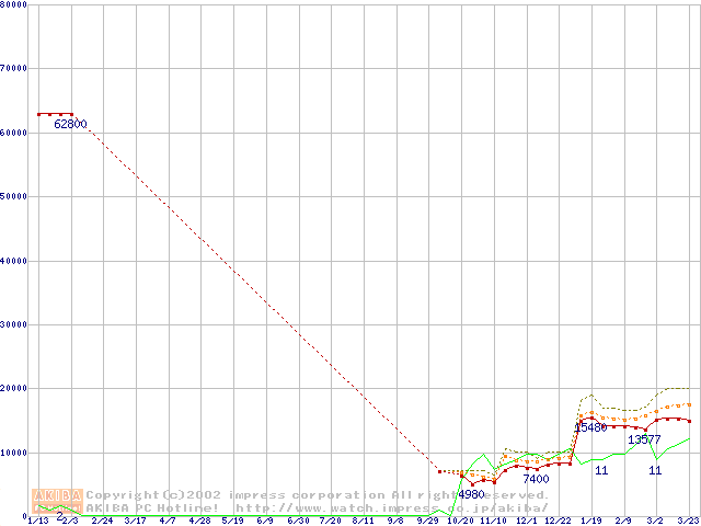 PC133 SDRAM DIMM CasLatency=2の最安値推移