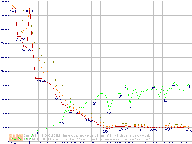 メモリ主要製品(最安値5千円~1万円未満)の最安値推移