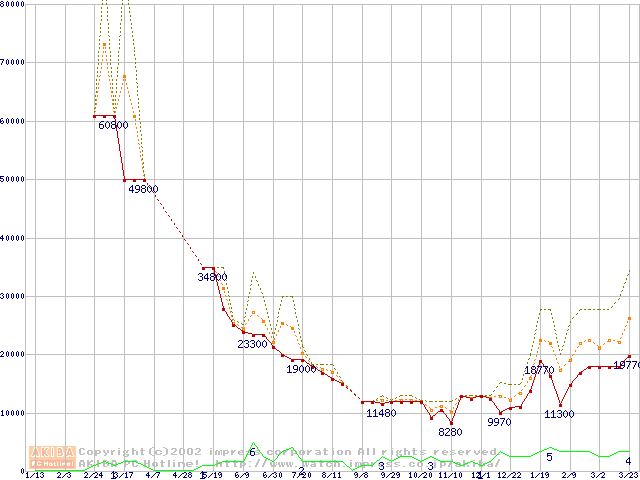 PC100 SDRAM DIMM CasLatency=2 ECC対応の最安値推移