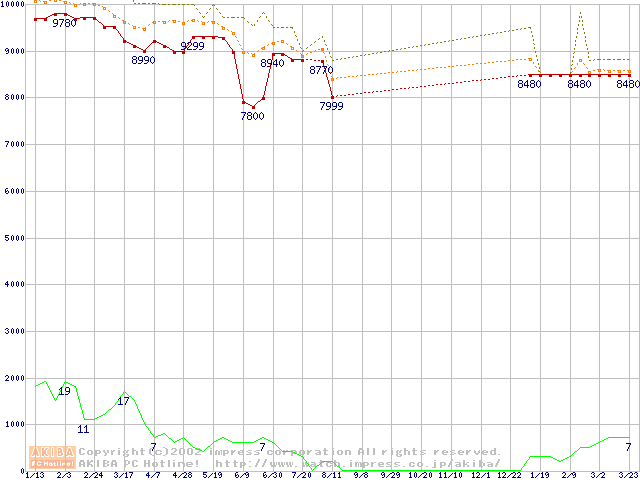 WD Protege (5400rpm,UltraATA/100)の最安値推移