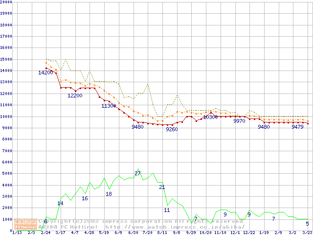 WD Caviar (5400rpm,UltraATA/100)の最安値推移