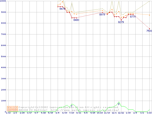 WD Caviar (5400rpm,UltraATA/100)の最安値推移