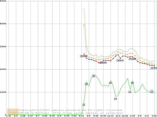 Pentium 4 1.70GHz(478pin)リテールパッケージの価格推移