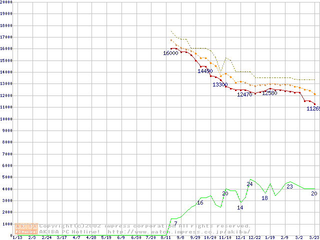 DiamondMax D540X (5400rpm,UltraATA/100,40GB/Platter)の最安値推移