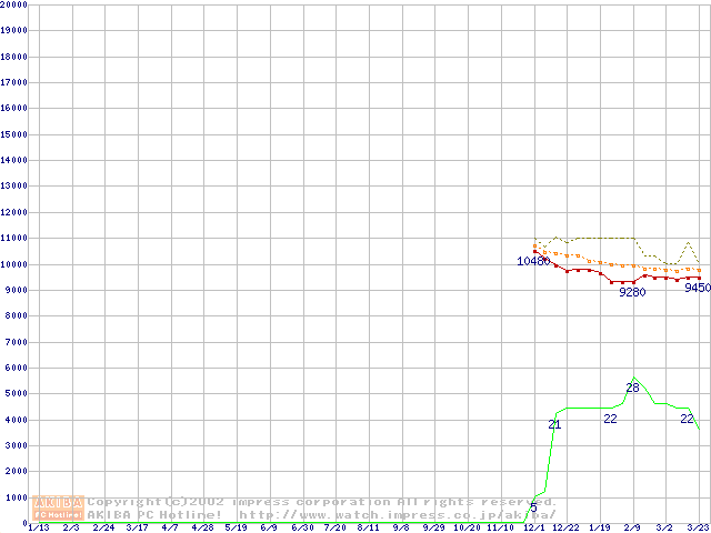 DiamondMax Plus D740X (7200rpm,UltraATA/133,40GB/Platter,流体軸受)の最安値推移