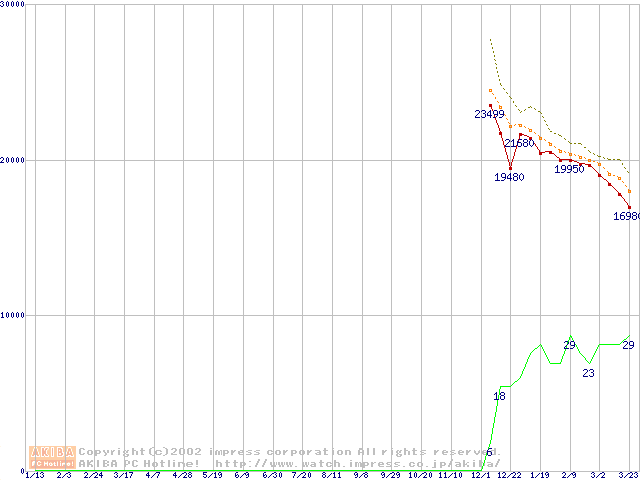 DiamondMax Plus D740X (7200rpm,UltraATA/133,40GB/Platter,流体軸受)の最安値推移