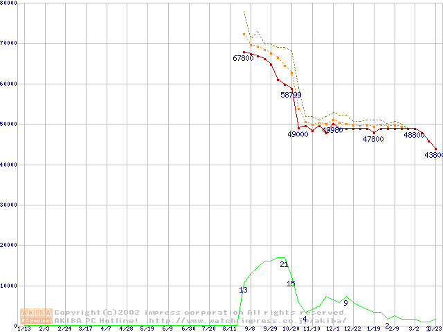 Pentium 4 2GHz(423pin)リテールパッケージ(RIMMなし)の価格推移