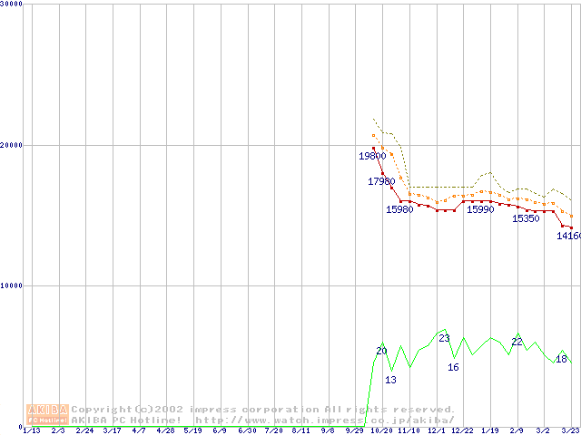 Socket A (Palomino,OPGA,FSB 266MHz,L2 256KB)の最安値推移