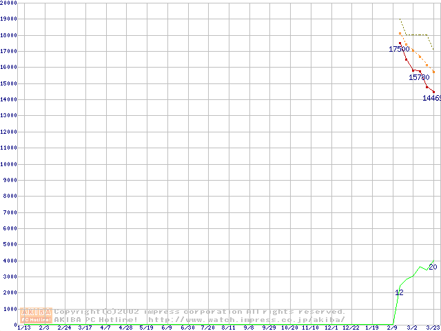 DiamondMax D540X (5400rpm,UltraATA/100,40GB/Platter,流体軸受)の最安値推移