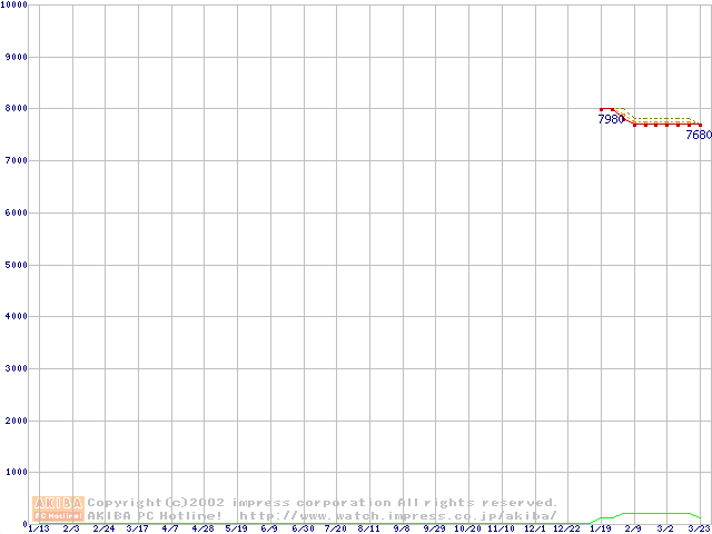 Socket 370 (PGA,FSB 100MHz,L2 64KB)の最安値推移