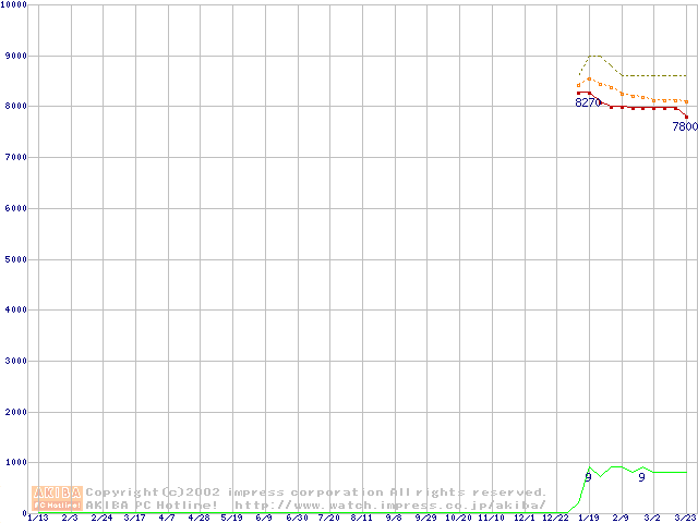 Socket 370 (PGA,FSB 100MHz,L2 64KB)の最安値推移