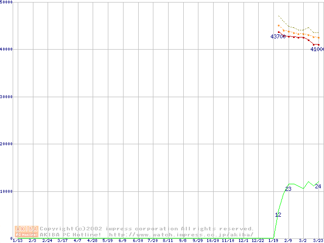 Socket 370 (FC-PGA2,FSB 133MHz,L2 512KB)の最安値推移