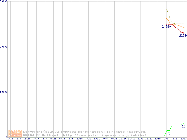 MHRシリーズ (9.5mm,4200rpm,UltraATA/100,2MB,20GB/プラッタ,流体軸受)の最安値推移