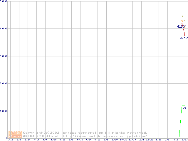 Socket A (Palomino,OPGA,FSB 266MHz,L2 256KB)の最安値推移
