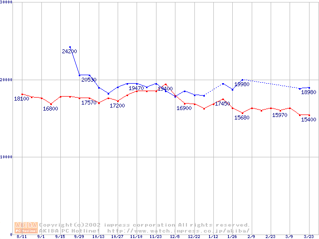 | [↓次グラフ]: | Slot 1 (SECC2,FSB 133MHz,L2 256KB)の最安値推移 |