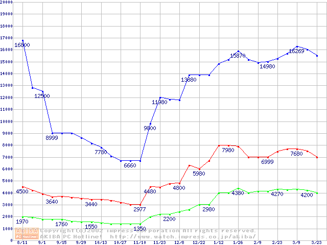 PC2100(DDR266) DDR SDRAM DIMM(CL 2.0)の最安値推移