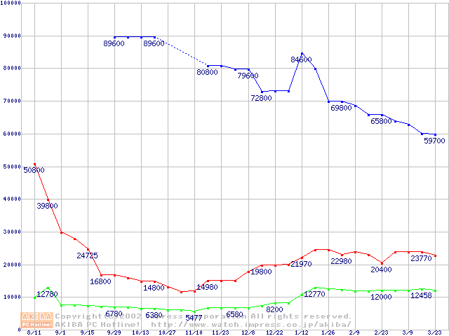 | [↑前グラフ]: | PC2700(DDR333) DDR SDRAM DIMMの最安値推移 |