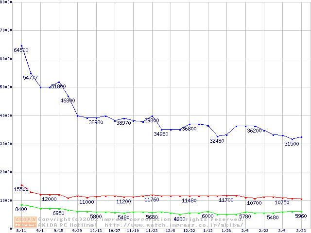 | [↑前グラフ]: | PC800 DRDRAM RIMMの最安値推移 |
