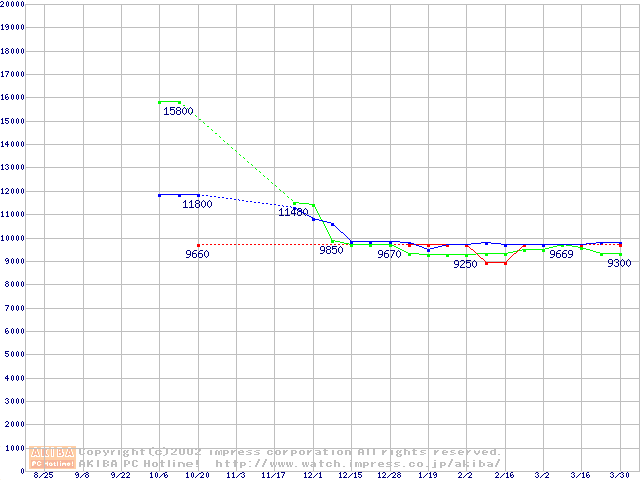 | [↑前グラフ]: | 2.5インチHDD主要製品の最安値推移 |