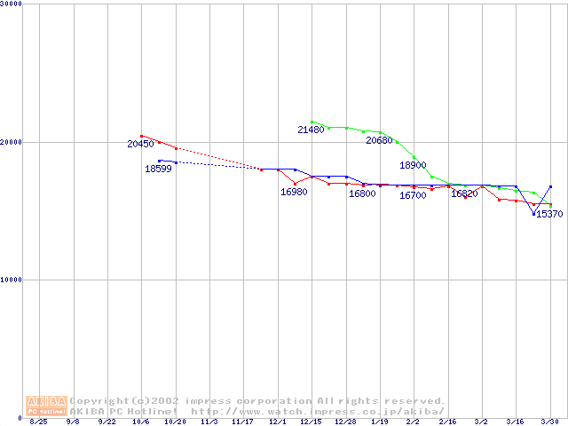 | [↓次グラフ]: | 2.5インチHDD主要製品(最安値2万円~3万円未満)の最安値推移 |