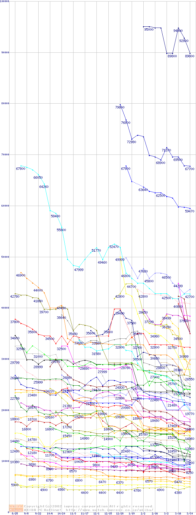 CPU主要製品の最安値推移