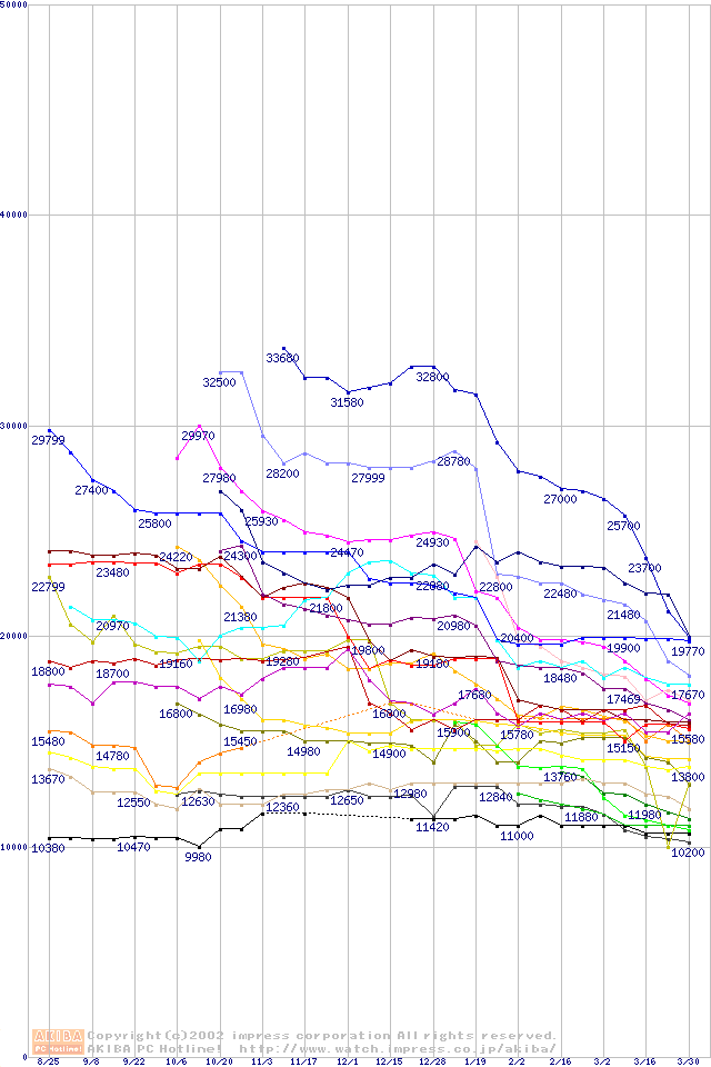 CPU主要製品(最安値2万円~3万円未満)の最安値推移