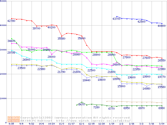 Socket 370・FSB 100MHzの最安値推移
