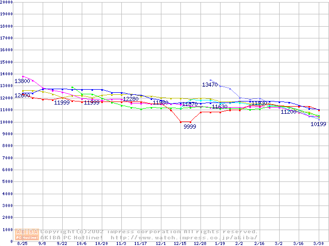 | [↑前グラフ]: | HDD 30GB~40GB未満(7200rpmクラス)の最安値推移 |