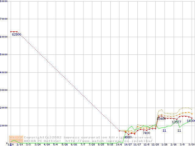 PC133 SDRAM DIMM CasLatency=2の最安値推移