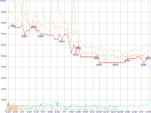 Socket 370 (PPGA,FSB 66MHz,L2 128KB)の最安値推移