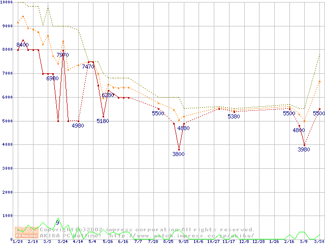 Socket 370 (FC-PGA,FSB 66MHz,L2 128KB)の最安値推移