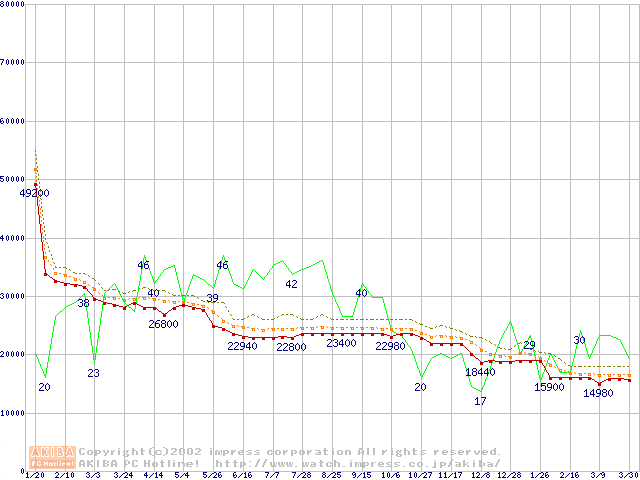 Socket 370・FSB 133MHzの最安値推移