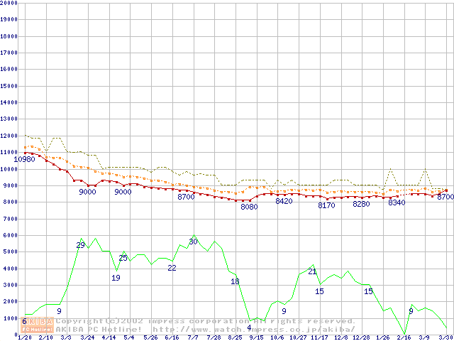 MPG3xxxAT (5400rpm,UltraATA/100)の最安値推移