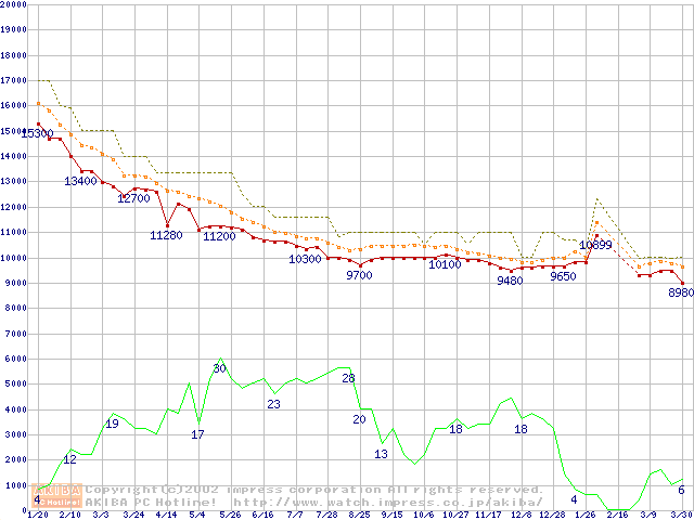 MPG3xxxAT (5400rpm,UltraATA/100)の最安値推移