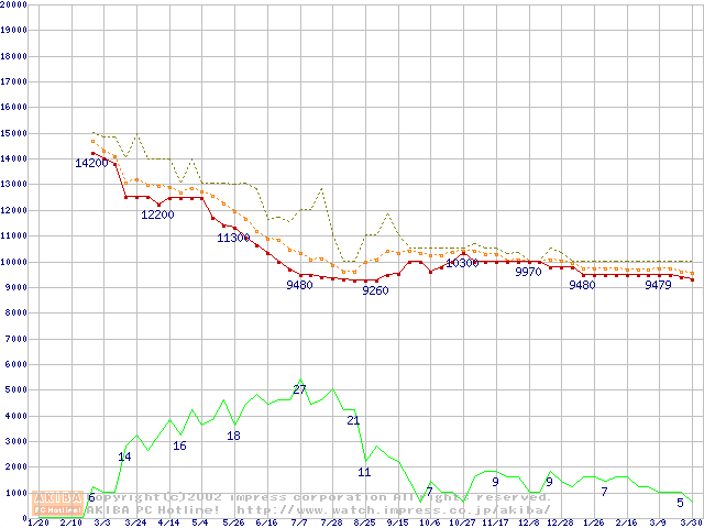WD Caviar (5400rpm,UltraATA/100)の最安値推移