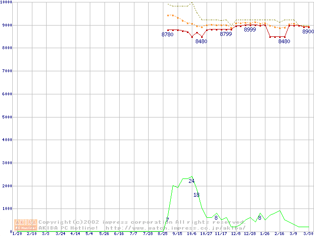 Deskstar 60GXP (7200rpm,UltraATA/100 2MB)の最安値推移
