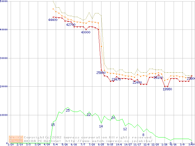 Pentium 4 1.70GHz(423pin)リテールパッケージ(RIMMなし)の価格推移