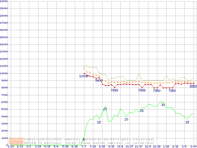 U6 (5400rpm,UltraATA/100 2MB 40GB/Platter)の最安値推移