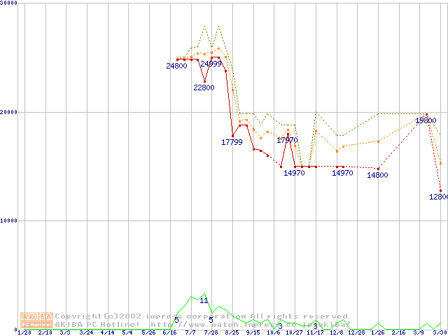 Pentium 4 1.40GHz(423pin)リテールパッケージ(RIMMなし)の価格推移